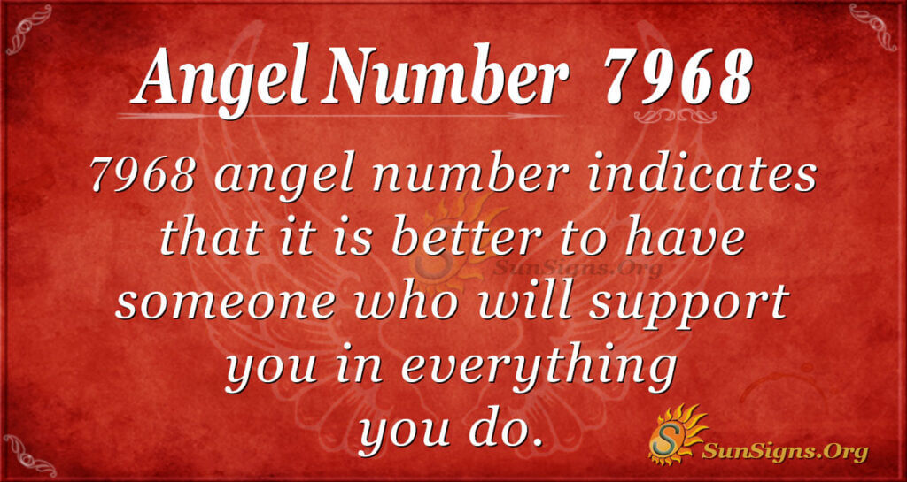 7968 angel number is the sign that indicates it is better to have someone who will support you in everything you do. In other words, it is the right time for you to find a companion who will give you happiness and comfort during challenging moments.