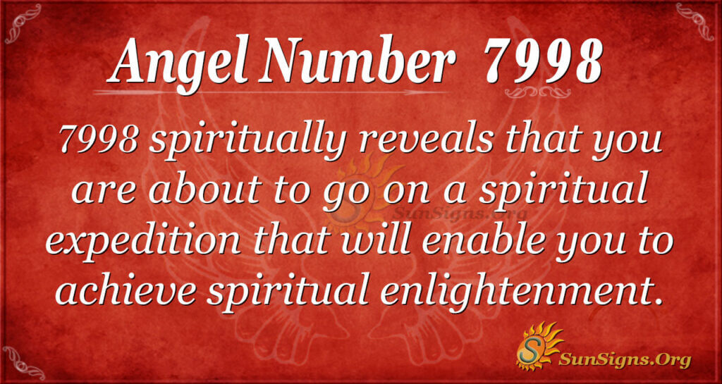 7998 spiritually reveals that you are about to go on a spiritual expedition that will enable you to achieve spiritual enlightenment. Spiritual enlightenment will, in turn, bring clarity into your life. Spiritual growth will enable you to discover your Divine life path.