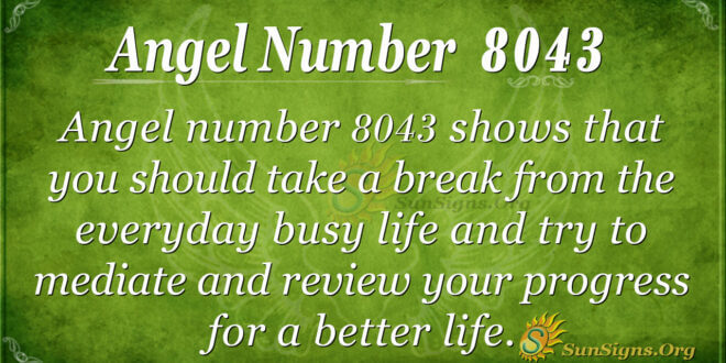 8043 angel number is the sign that shows you need to meditate on your spiritual life to connect better with the divine realm. Pray to almighty God to help you discover your real gift and live to your dreams. Your guardian angels have come closer to you than before and will help you succeed in all your endeavors.