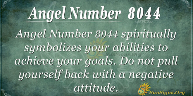 The lucky number 8044 spiritually symbolizes your abilities. You have all it takes to achieve your goals. However, with a negative attitude, you are pulling yourself back. One of your biggest fears is failure. If you fear failing, you should not pursue your dreams in the first place.