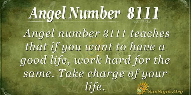The meaning of 8111 reveals that the future is bright for you. You need to start now to enjoy the fruits of your labor. This angel number comes to you as a sign that you need to start living your life with intention. Live a life that makes you happy. You are capable of making your life what you want it to become. Pay attention to what your guardian angels have to say, and all will be well with you.