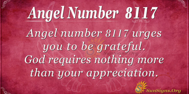 In all you do, angel number 8117 is the sign that urges you to be grateful. God requires nothing more than your appreciation. Therefore, remember that you owe your creator every achievement you make in your life. Besides, you will earn much more if you continue to be humble, no matter your status. Often, humility and success go hand in hand.