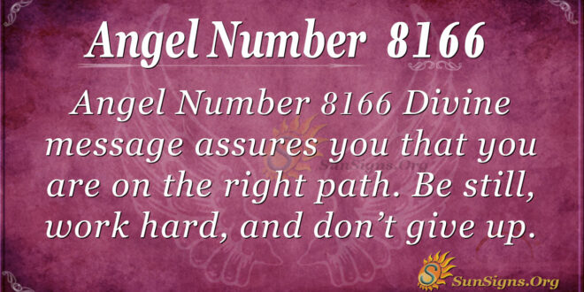 What does 8166 mean spiritually? The spiritual meaning of angel number 8166 constantly indicates that you believe beyond the impractical. In other words, sacred beings want you to improve on your self-belief. The time has come for you to broaden your vision and create a life that is truly worth living. Beyond your imagination, the spiritual meaning of 8166 insists on holding on to the attributes of persistence, creativity, and inner calm.