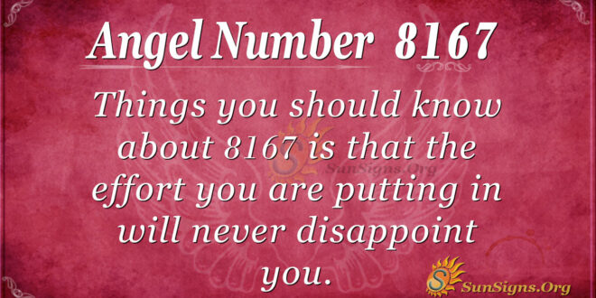 Angel number 8167 is a message that constantly tells you that the effort you are putting in will never disappoint you. In other words, you will earn everything you have been aiming for if you are willing to work hard. Furthermore, hard work never disappoints. Equally, everyone will become successful if they are willing to concentrate and put effort where it deserves.