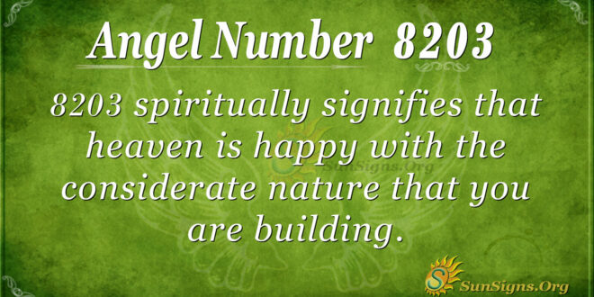 The message of 8203 is being open-minded and accepting what others are going through. It will help you learn of your weaknesses or strengths as you choose to have a considerate perspective about others. Furthermore, angels are urging you to let others know that you are part of them so that they can appreciate your concern and help them.