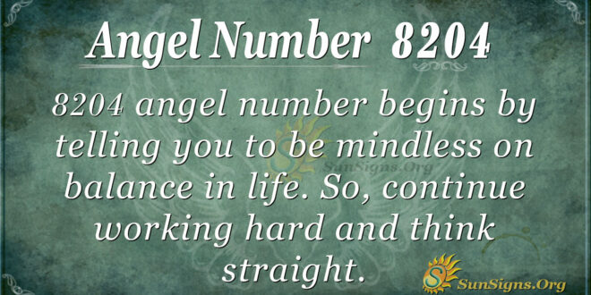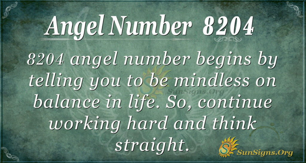 8204 spiritually, guides you on the best way you can serve your dreams. Therefore, you need to factor in the elements of pleasing the heavens to show you paths that will yield success and prosperity in your life. Believe in your visions as they will be the only way to accomplish your missions. Plus, have faith in angelic guidance as it will give you strength and power to overcome obstacles that you face daily.