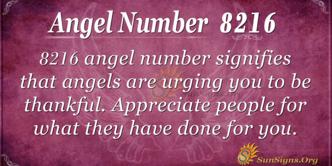 8216 angelic number signifies that angels are urging you to be thankful. Appreciate people for what they have done for you. Besides, you will put a smile on their face when they see your honesty and kindness towards them. Additionally, it should not always be about you but think of others you round yourself with.