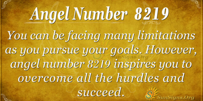 When you keep seeing signals from ofromyour angels, do not get so much worried. Instead, celebrate because your fate is known to your angels. Therefore, continue praying as your prayers are getting a positive response. Do not cry anymore as your wishes are coming to reality. The meaning of phone number 8219 encourages you to focus now on expanding your territories and creating new opportunities.