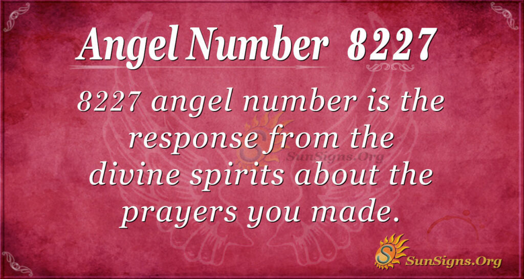 The messages will, in turn, help you walk in the right towards your personal development. Besides, the 8227 lucky number is the response from the divine spirits about the prayers you made. So, pay close attention, as the interpretation of the messages you receive is here.
