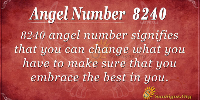 The prophetic meaning of 8240 is that angels constantly tell you to develop a positive attitude that will drive your life and ensure that you get to where you desire in your life. Additionally, nothing can be changed. You only need to accept the change and move to achieve what you are dreaming of.