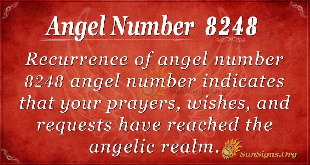 8248 is an angelic realm sign urging you to find time to rest. You need to relax and get enough sleep to perform at your best. Besides, it will deliver the best results.