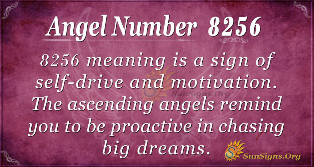 Equally, 8256 twin flame meaning is a sign of self-drive and motivation. The ascending angels remind you to be proactive in chasing big dreams. Therefore, work to attract only the best and experience a great sense of value and empowerment.