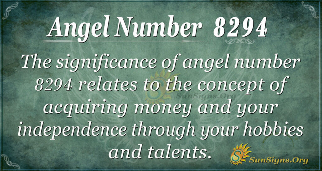 The significance of angel number 8294 relates to acquiring money and your independence through your hobbies and talents. The guardian angels will use this concept to help you understand the benefits of progress. The very presence of this angel number indicates that you’re vulnerable and not focusing on your goals.