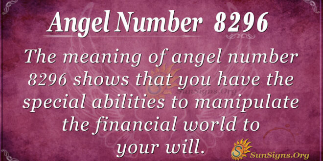 The meaning of phone number 8296 shows that you have the special ability to manipulate the financial world to your will. First, however, you have to learn the various concepts you need to make a lot of money. This is why the spiritual guides are sending you this signal to help you with your progress.