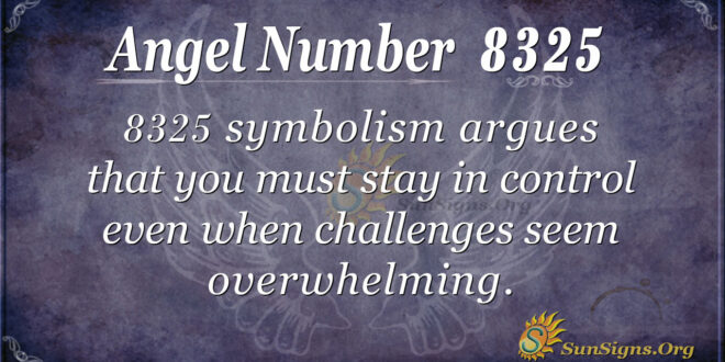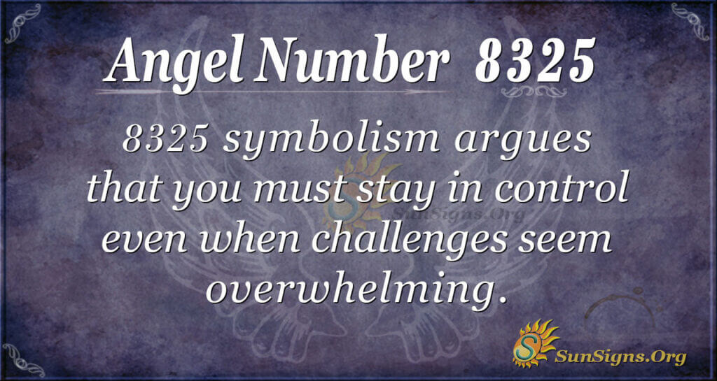 In addition, 8325 symbolism argues that you must stay in control even when challenges seem overwhelming. The idea of allowing challenges to get the best of you only renders you powerless. This is the last thing you should let happen to you. According to spiritual meaning 8325, believing that you are in control helps give you the confidence to face your fears.