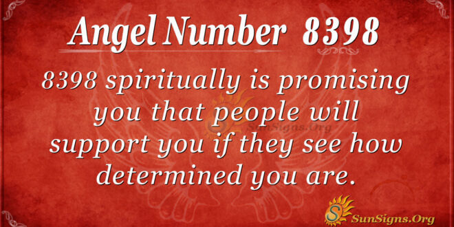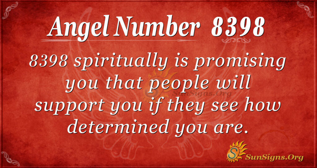 8398 Symbolism reveals that you need to choose your friends wisely. Your friends will help you achieve your goals or destroy what you have already built. You have the power to choose who to associate with. Do not be a people pleaser.