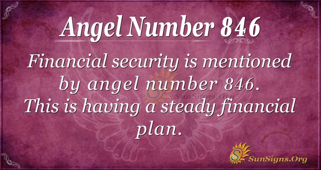Angel number 846 mentions financial security, which is having a steady financial plan. You have an excellent job. You make more than most people. Your habits and hobbies make it difficult for you to save your money. You have to start thinking about tomorrow.