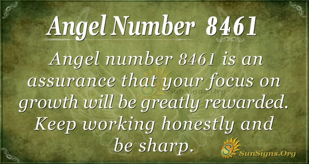 Angel Number 8461 is a message from your guardian angels about finding balance in your life. It is also an assurance that your focus on growth will be greatly rewarded. Keep working honestly and be sharp in all your engagements. Finding balance in your life will bring calmness and fulfillment.