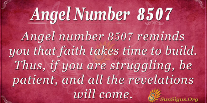 Lucky number 8507 reminds you that faith takes time to build. Thus, if you are struggling, be patient, and all the revelations will come.