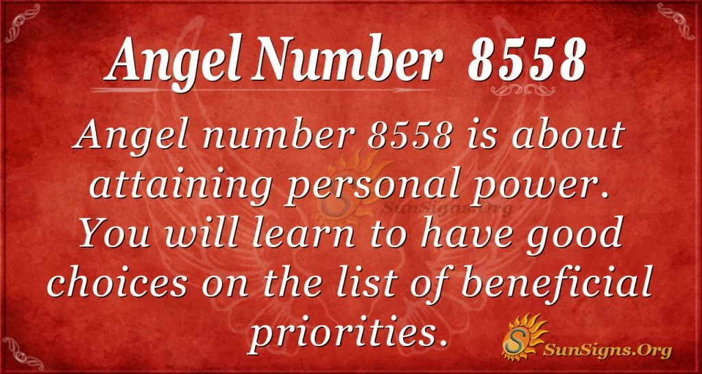 As you progress in life, there is a need to look deep into your choices. Your decisions today are significant indicators of your life tomorrow. Angel number 8558 Twin Flame is about attaining personal power. When you listen and learn from it, you will have good choices on the list of beneficial priorities.