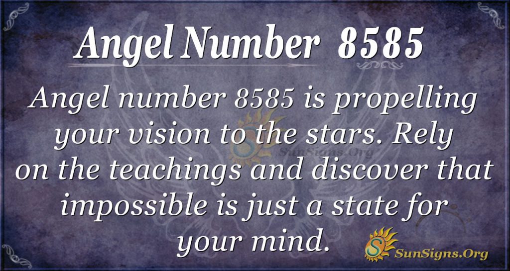 Having a double portion of blessings is a significant blessing for you. It proves that your walk with your angels is on the right path. If you yearn to get the double increase, then listen to the wisdom of the next phrase. Angel number 8585 is propelling your vision to the stars. Rely on the teachings and discover that the impossible is just a state of your mind.