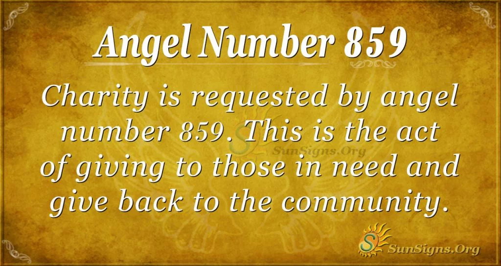 859 symbolism indicates that whatever you are facing in life will someday pass. In other words, you should not allow challenges to take away your potential. Equally, everything will be well soon.