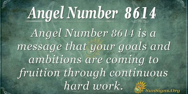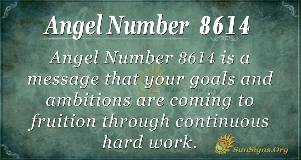 Angel Number 8614 is a message from the divine realm that your goals and ambitions are coming to fruition in your life. You should continue working hard for the things that you want in your life. No one should tell you otherwise because you know the great things that you are capable of doing.