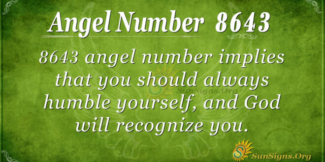 8643 angel number implies that you should always humble yourself, and God will recognize you. In other words, you should never force something to happen but wait for the right time. Notably, someday you will become a leader.