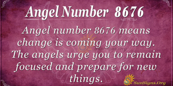 An encounter with 8676 symbolism signifies that change is on the way. The angels urge you to remain focused and prepare for new things. You do not have to fear.