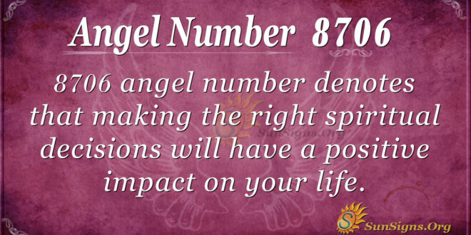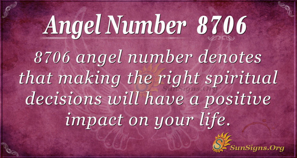 8706 spiritually reveals to you that trusting yourself helps you make intelligent decisions. Regarding your spiritual path, your spirit guides encourage you to trust yourself more, as this will ensure you make the right spiritual decisions. The 8706 angel number indicates that making the right spiritual decisions will have a positive impact on your life. You will be more motivated to live, knowing that you have a higher purpose on earth.