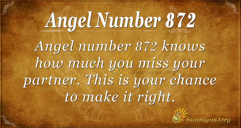The number 872 knows how much you miss your partner. This is your chance to make it right. Strike a balance with a fair resolution.