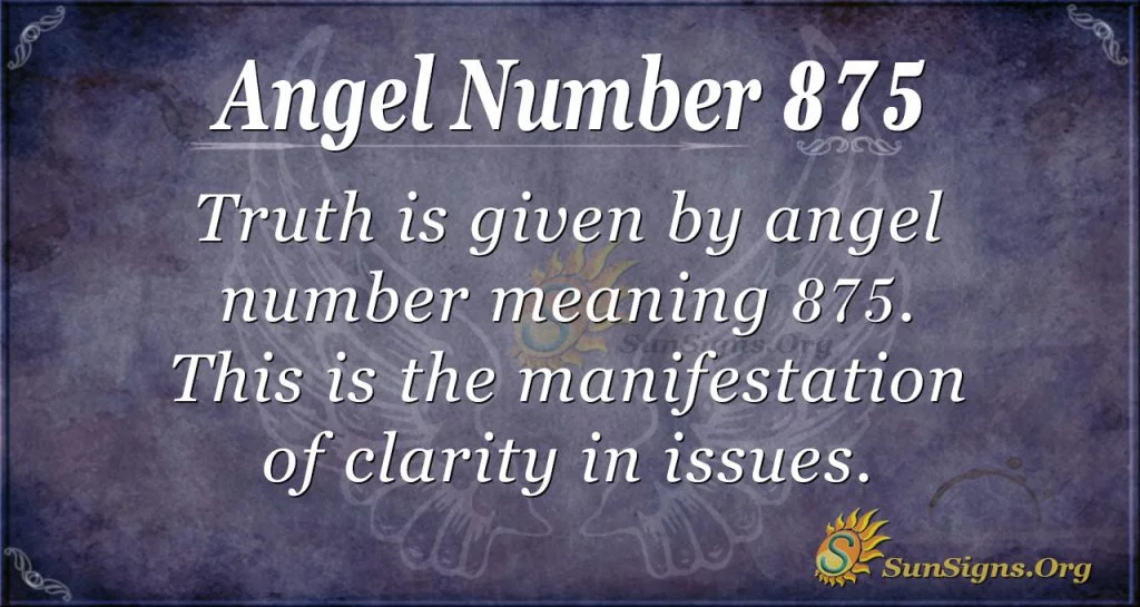 Angel number 875 has many signals to offer. Number 8 is a sign of discipline, which means doing things in a certain way and respecting a set schedule. Number 7 is a symbol of purity, reflecting actions of innocence and naivety.