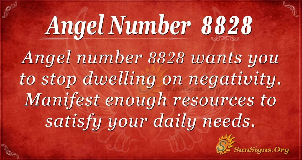 What does 8828 mean spiritually? The spiritual meaning of 8828 speaks more of working relentlessly while you still have the energy. The Divine wants you to make good use of the opportunities given to you. Numerology 8828 spiritually warns you to work hard during old age, for it will be impossible to eat your sweat with ease.