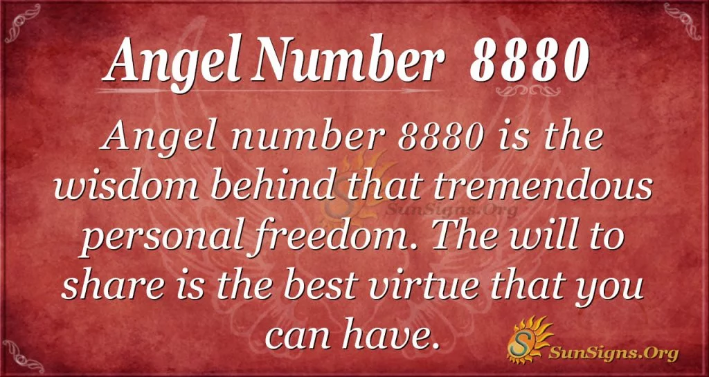 The will to share is the best virtue that you can have. Angel number 8880 is the wisdom behind that tremendous personal freedom.