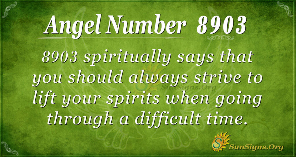 8903 spiritually suggests that you should always strive to lift your spirits during a difficult time. Picture yourself doing wonderful a month or a year from today. Sure, things might not be running smoothly now. But it doesn’t mean that things will stay that way. 8903’s meaning suggests that nothing in life is permanent. Expect positive transformation in your life and have faith that you will thrive.