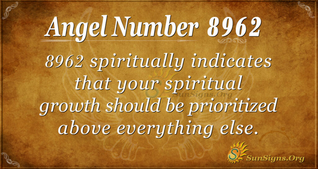 8962 spiritually indicates that your spiritual growth should be prioritized above everything else. Growing spiritually doesn’t mean that you should be overly religious. NO! Quite the opposite, it means getting to know yourself better. The 8962 angel number states that knowing your very nature as a divine being means a lot to you.