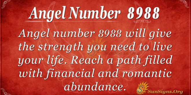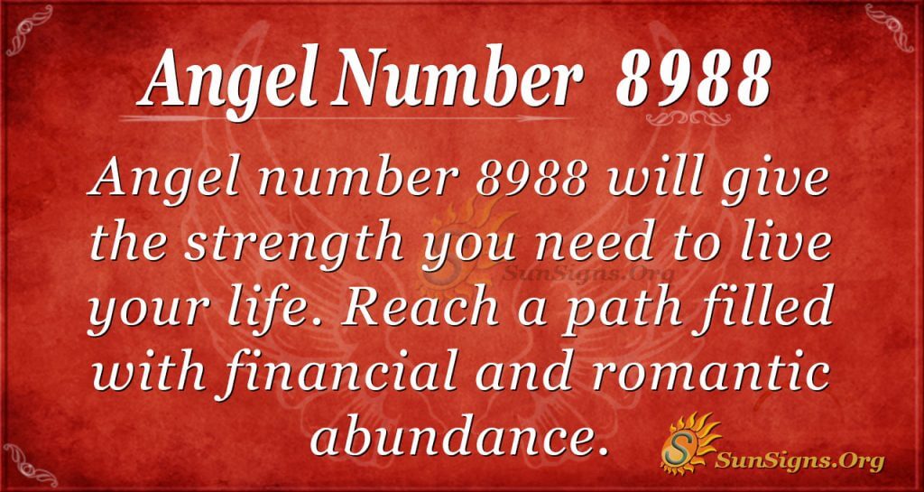 Next time you see number 8988, you’ll understand the message it gives you. You will receive the strength you need to live your life and fight your problems. Finally, you will reach a path filled with financial and romantic abundance.