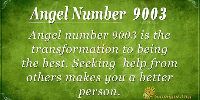 You indeed have a handicap in your operations. So, it is good to have others help you to grow. Angel number 9003 is the transformation to being the best. Seeking help from others makes you a better person in your life journey.