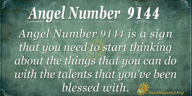 Recurring Angel Number 9144 combines the vibrations of the numbers 9, 1, and 4. Number 9 encourages you to use your talents well and share them with the world.