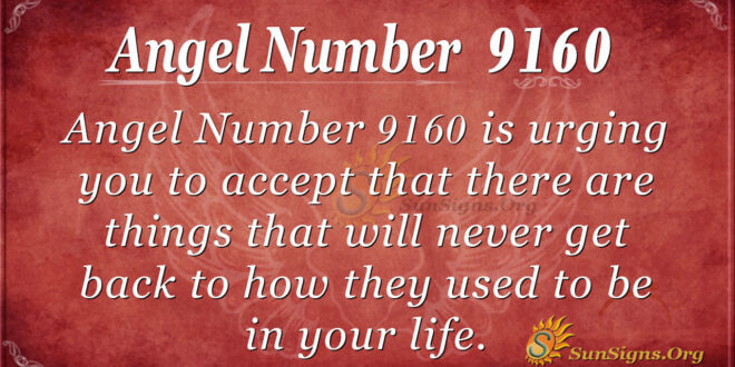 Angel Number 9160 is urging you to accept that some things will never get back to how they used to be in your life. Holding onto them will only bring you pain. Learn to move on from past things.