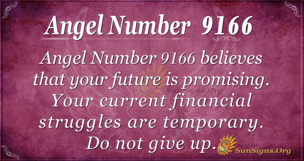 The angelic message from Lucky 9166 is that you should not give up on yourself and others. You are essential not only to your loved ones but also to your community.