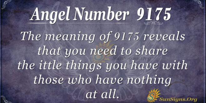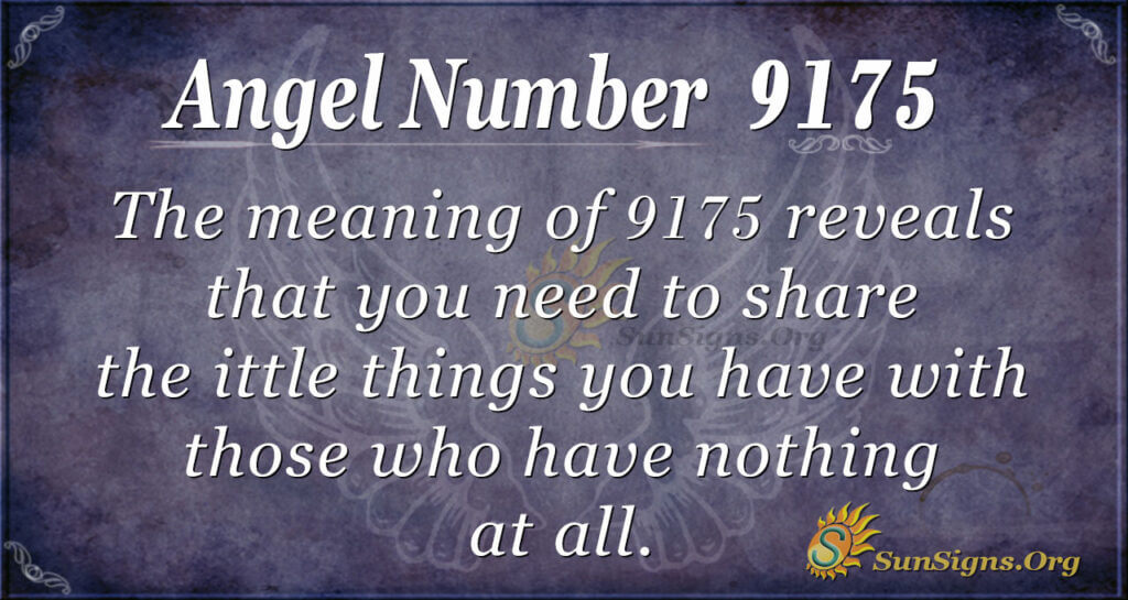 Angel Number 9175 assures you that caring will make a big difference in someone’s life. Do not wait until you have a lot of money before you start caring for others. Start now, and you will make the world a better place to live.