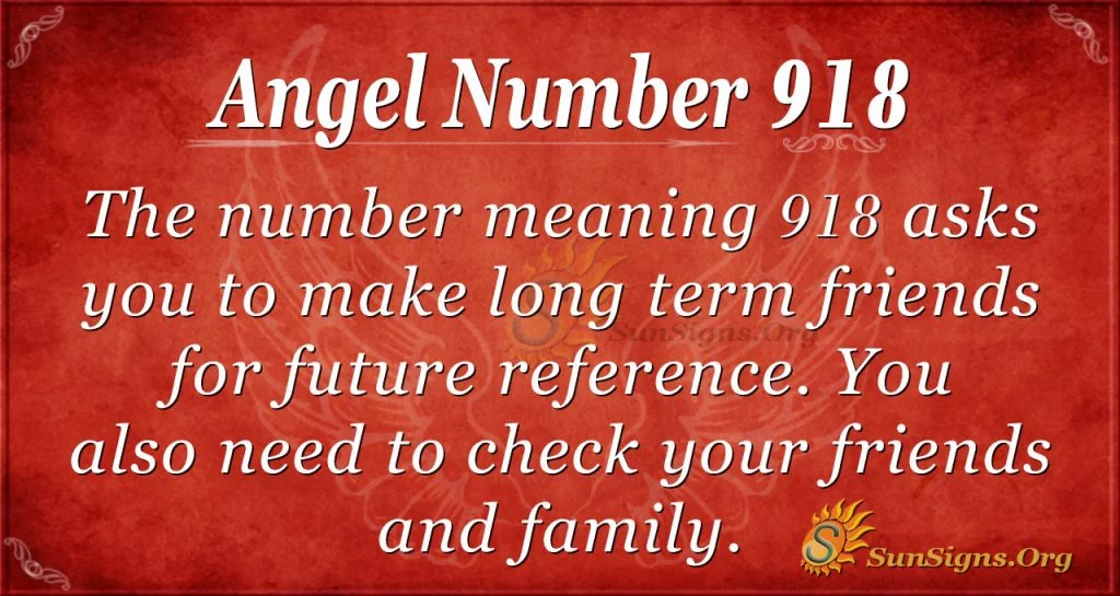 What does 918 mean spiritually? Your friends are a great asset in life, especially during tough times. Thus, you need to find better ways to nurture and maintain healthy relationships with others. Look for like-minded guys and make new friends; you can join some centered groups that focus on some of your interests.