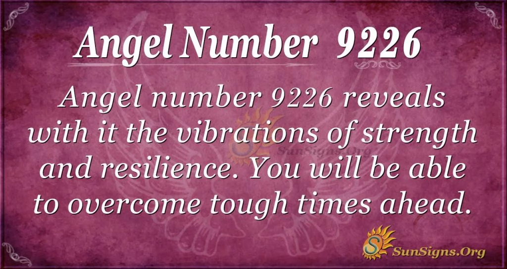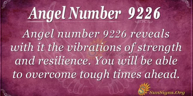 Angel Number 9226 symbolism reveals that soon your life will be taking a turn for the better because of your hard work and determination. Your guardian angels are urging you to leave the past behind and focus on what the future holds.