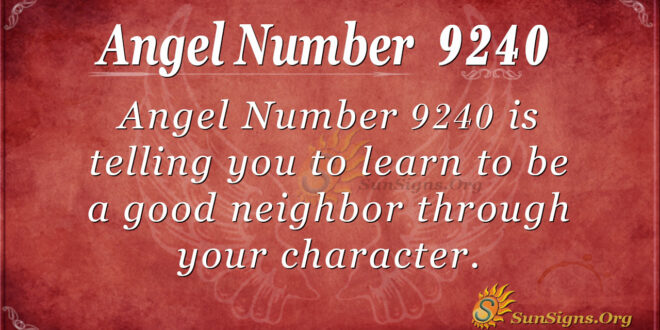 Your guardian angels are encouraging you to open your home to your neighbors. 9240 spiritually tells you that you can invite them to celebrate with you when you win. These are the same people who will give you a shoulder to lean on when you feel low in your life.