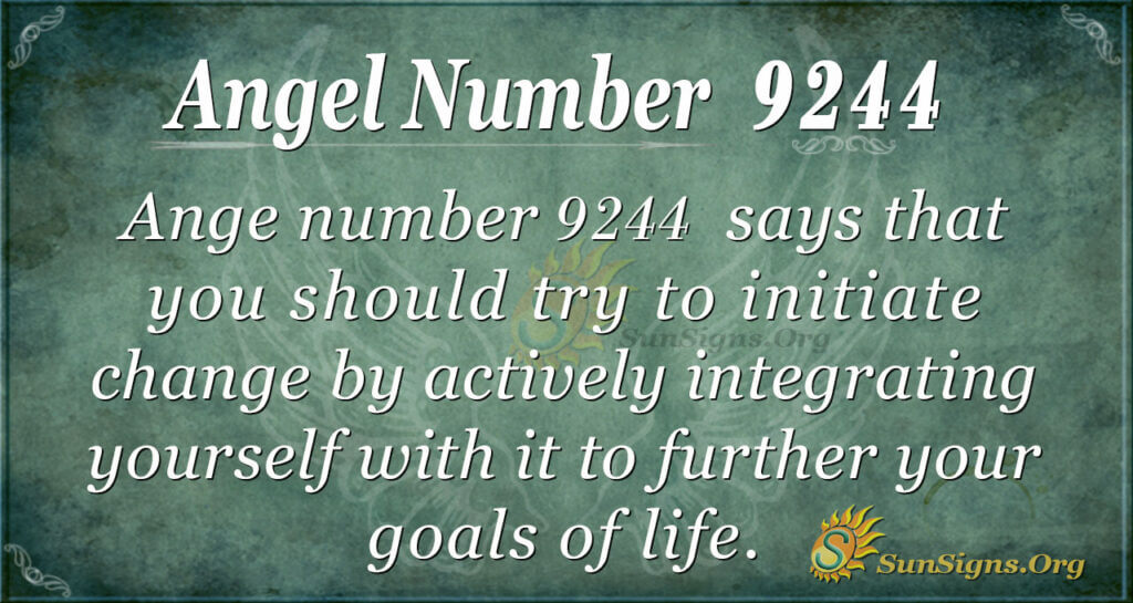 The 9244 spiritually says that you should try to initiate change by actively integrating yourself with it to further your life goals. Try to determine the changes in your life and environment that will best serve your purposes. In other words, your unique life mission should produce the incentive to create the changes necessary to fulfill your real purpose, which is the spiritual meaning of 9244.
