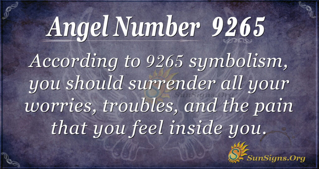 9265 spiritually speaks of putting your trust in God and believing that solutions to your problems will soon manifest in your path. Release your need to be in control. The 9265 twin flame angel number says that you should trust that you are going through challenges for a good reason.