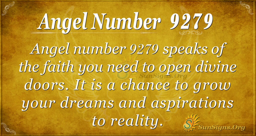 Angel number 9279 speaks of the faith you need to open divine doors. It is a chance to grow your dreams and aspirations into reality.
