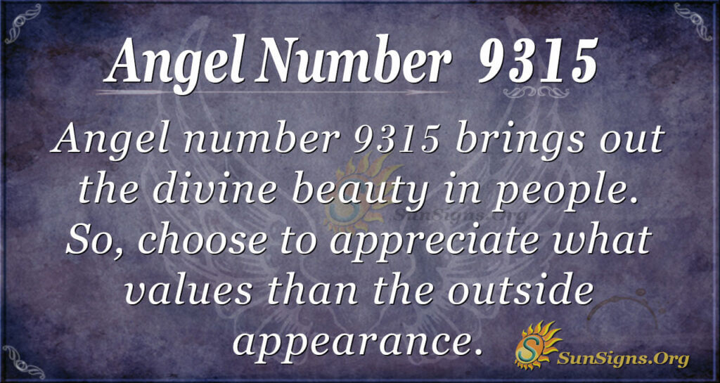 Angel number 9315 brings out the divine beauty in people. So, choose to appreciate what value than the outside appearance.