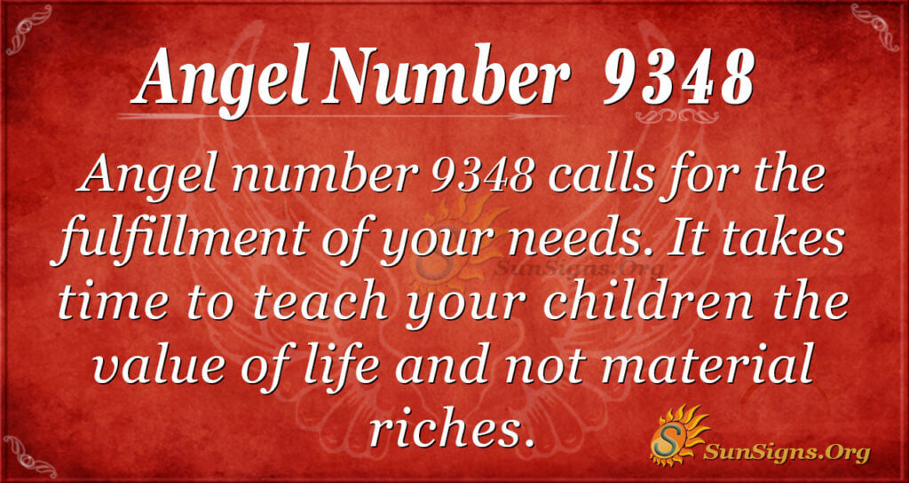 Angel number 9348 calls for the fulfillment of your needs. It takes time to teach your children the value of, not material riches.